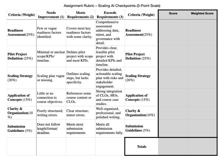 “By the end of this module, you’ll be able to measure AI’s impact, design a pilot roadmap, and recommend strategies for scaling AI adoption.”Learner Activity/Interaction: Read/listen.